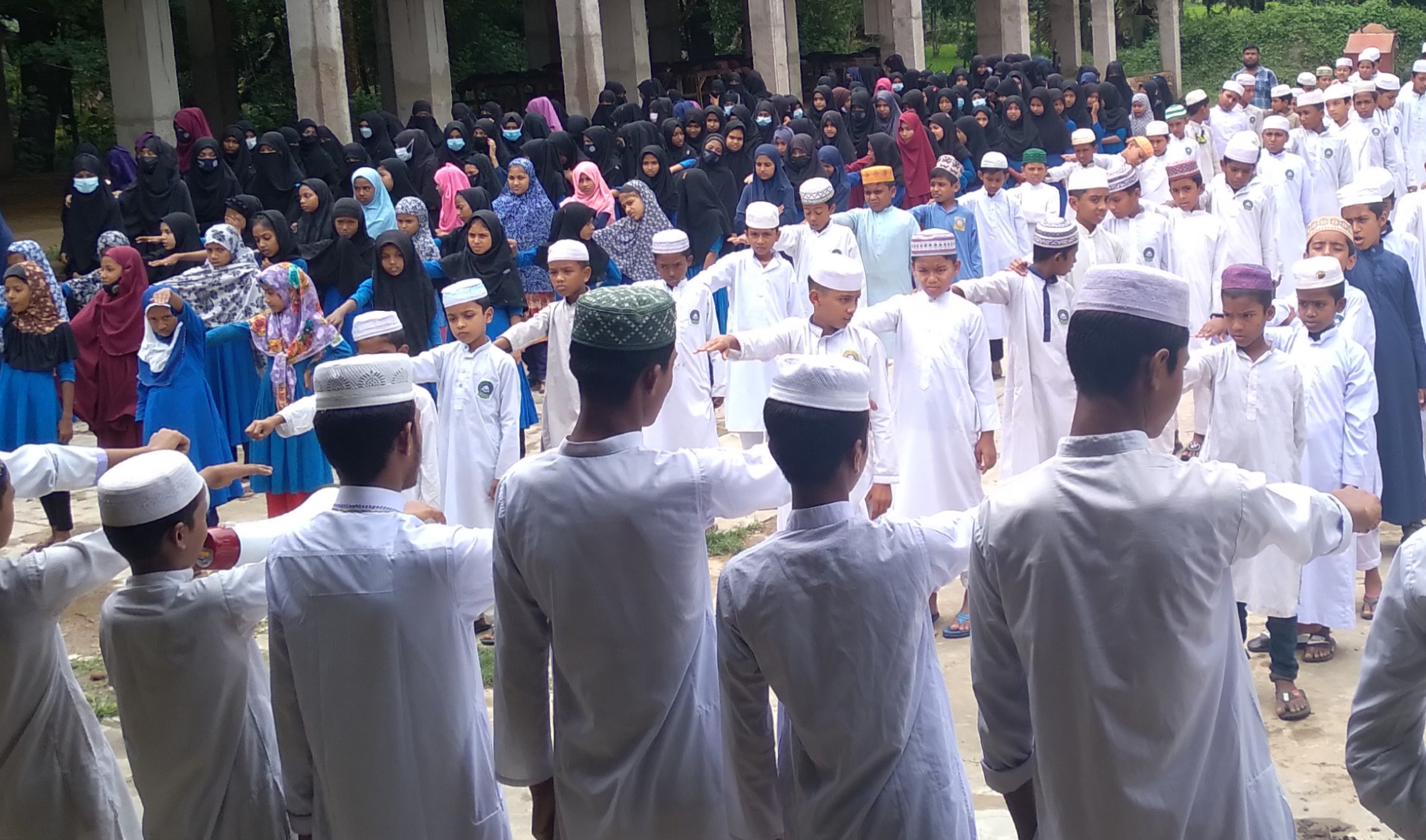 চট্টগ্রাম জেলার মিরসরাই উপজেলার সাহের খালি গ্রামে অবস্থিত আহমদিয়া হাবিবিয়া গণিয়া দাখিল মাদ্রাসার প্রাত্যহিক সমাবেশের একটি অংশ।