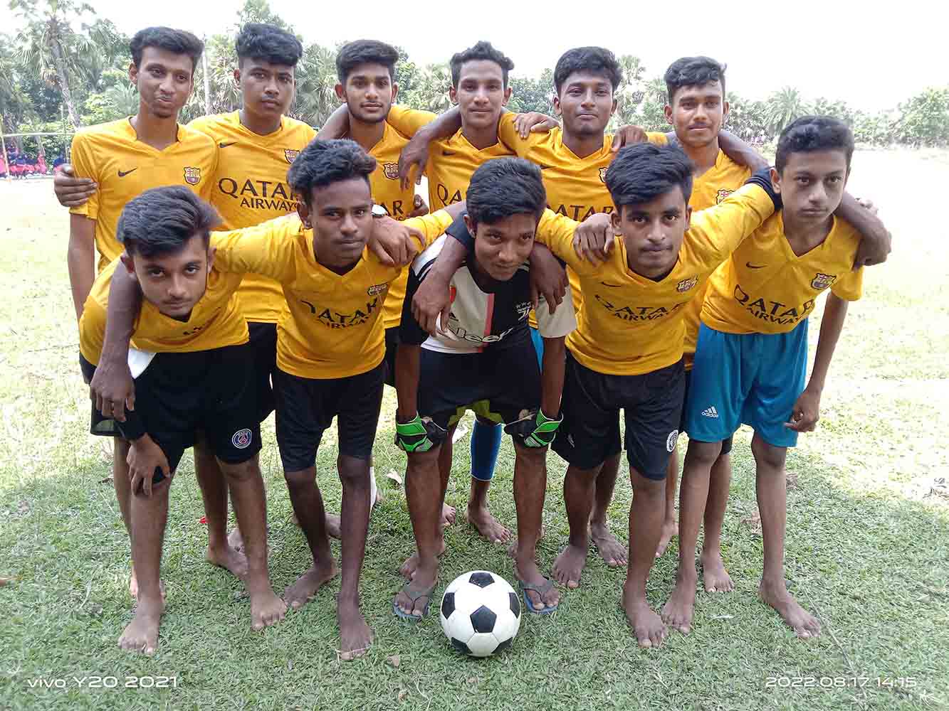 নবম বনাম দশম শ্রেণির ফুটবল খেলায় দশম শ্রেণির খেলোয়াড়দের ছবি।