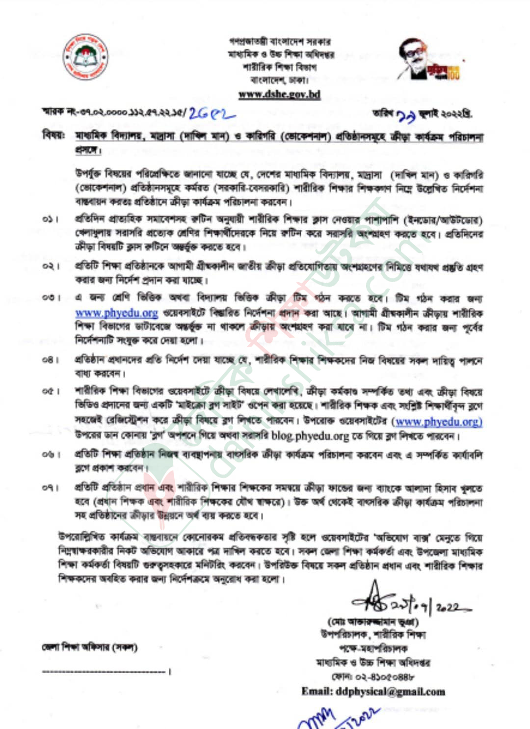 শারীরিক শিক্ষা বিষয়টি শ্রেনী কার্যক্রমে অন্তর্ভূক্ত করায় শারীরিক শিক্ষা পরিবার থেকে স্যার কে জানাই শুভেচ্ছা ও অভিনন্দন।