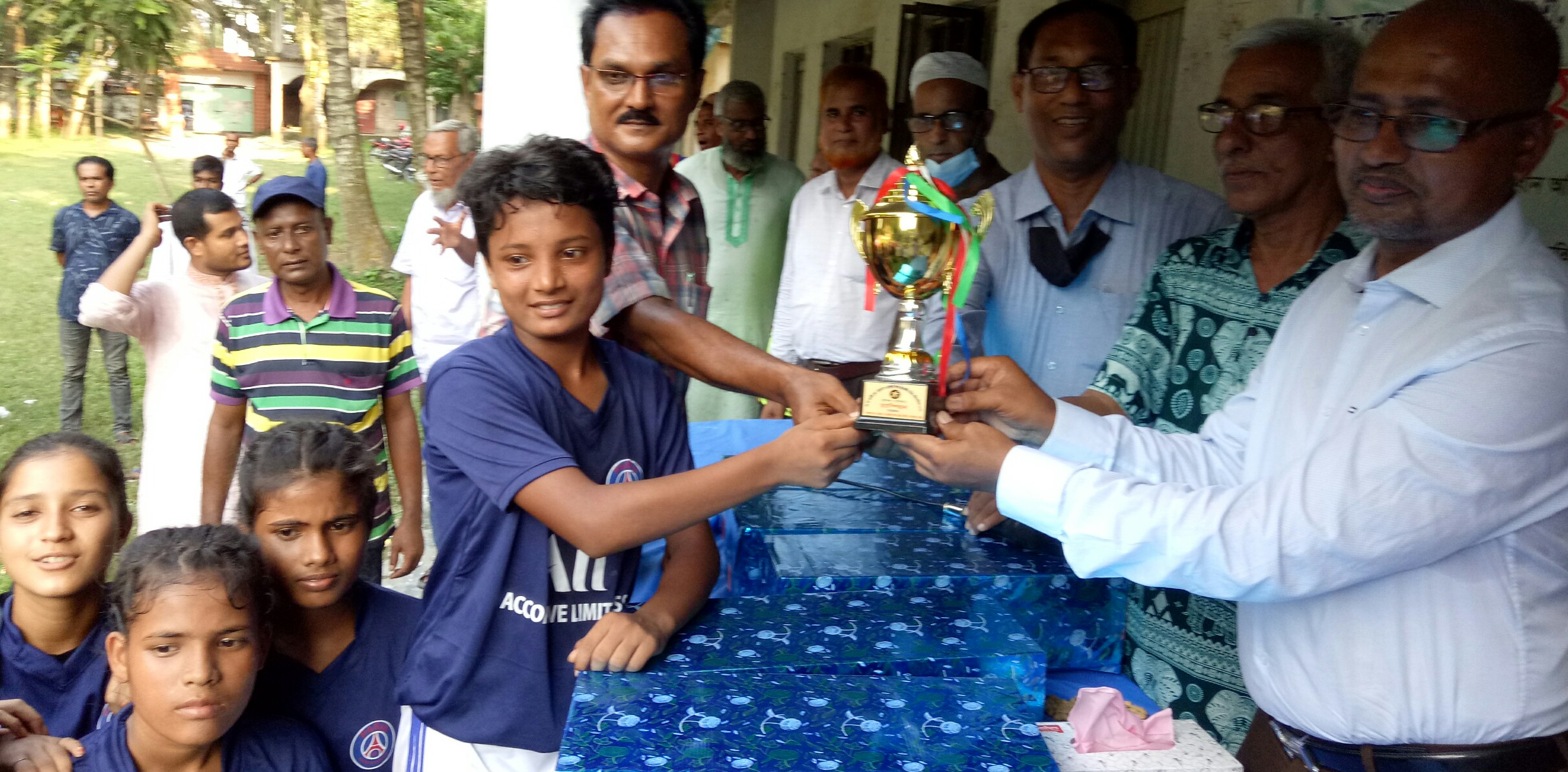 প্রধান অতিথি চ্যাম্পিয়ন ও রানার্স আপ দলের হাতে ট্রফি তুলে দেন।