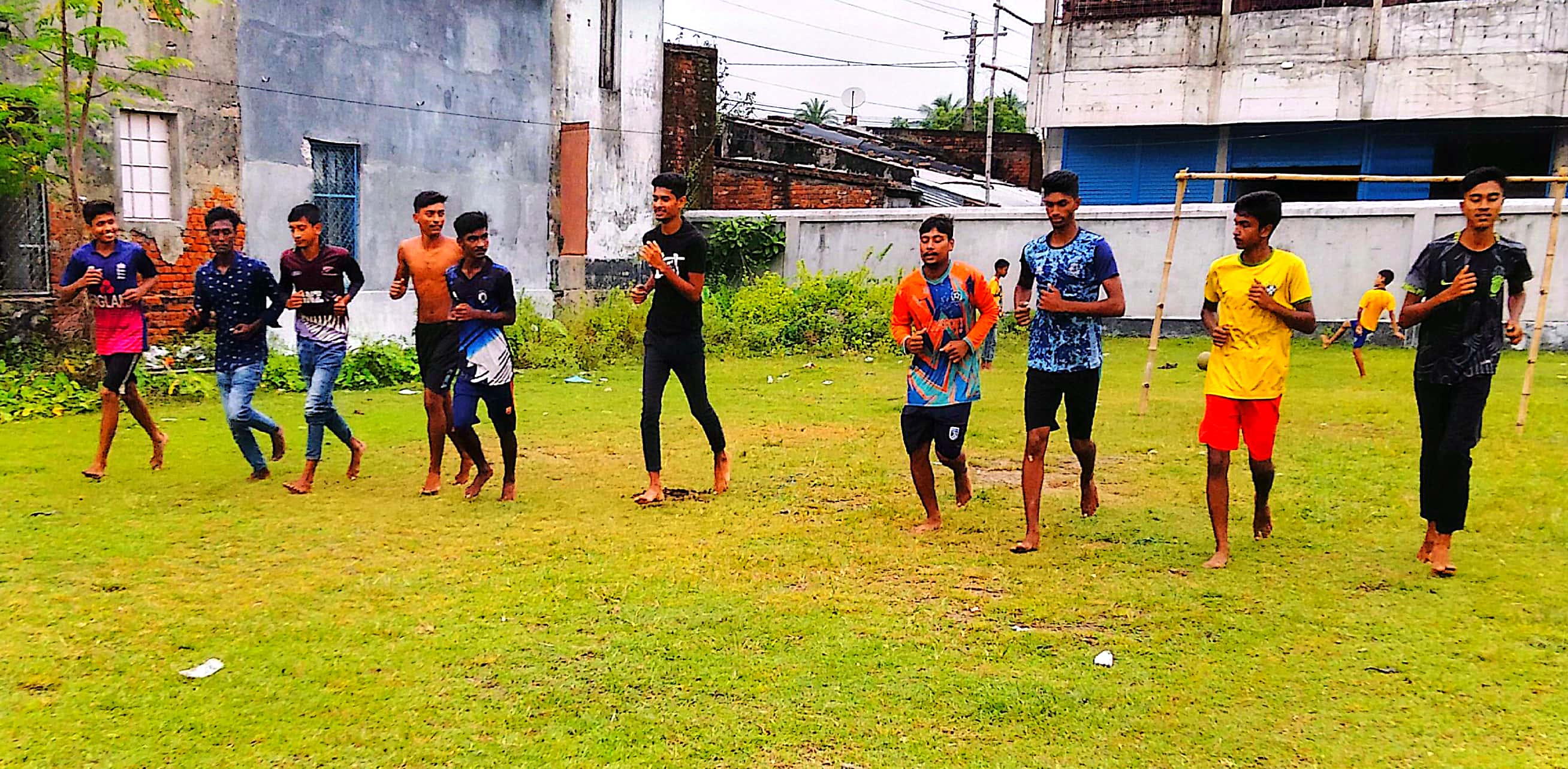 উপ-অঞ্চল পর্যায়ের খেলায় অংশগ্রহনের জন্য ছাত্রদের অনুশীলন। ওয়ার্ম আপের ছবি।
