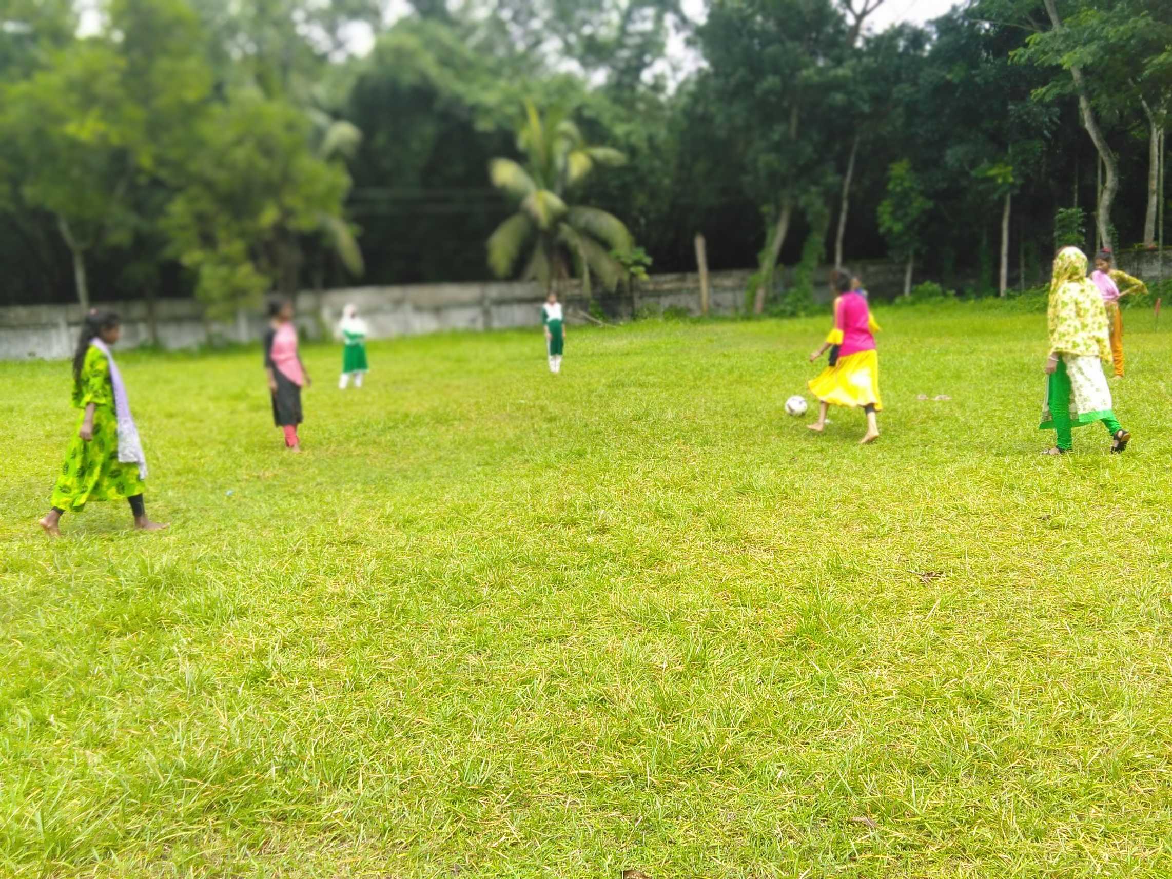 গ্রীষ্মকালীন খেলার অংশ হিসাবে, কাজদিয়া মাধ্যমিক বালিকা বিদ্যালয়ে মেয়েদের ফুটবল খেলার অনুশীলন।